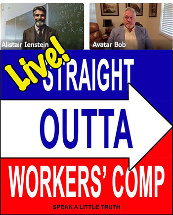 In an industry first, Bob Wilson, BA, WRP, AIWC and Mark ‘RxProfessor’ Pew, AIWC will host this LIVE Straight Outta Workers’ Comp Podcast, with AI Powered Interactive Avatars as their scheduled guests. Alistair Ienstein, the “Academic Innovator” chatbot from WorkCompCollege.com’s virtual campus, has been brought to life for pithy discussion, and Avatar Bob, fresh from his successful debut as a presenter at the National Workers’ Compensation Defense Network (NWCDN) Conference in Chicago, will be the featured guests and look forward to playing “Stump the (AI) Expert!”